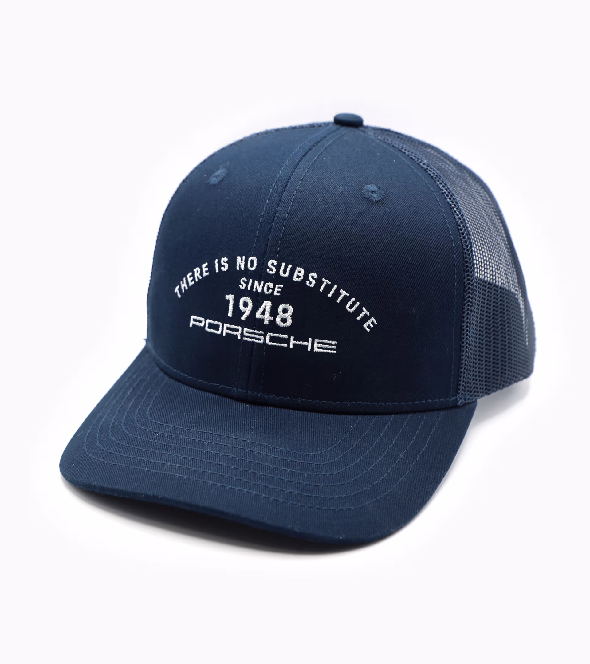 Sporty trucker cap with "Porsche. There Is No Substitute." embroidery in the front and mesh back.